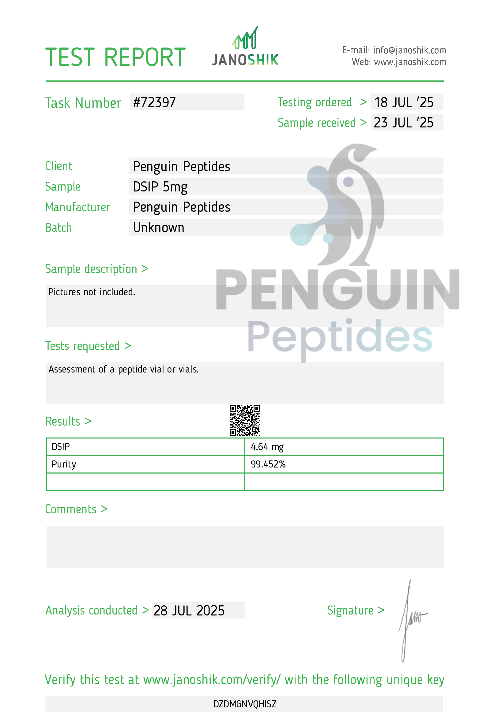 DSIP is a naturally occurring neuropeptide studied for its potential role in sleep regulation, stress response, and neuroendocrine function. Originally isolated from the brain, DSIP is of particular interest in research on sleep patterns, circadian rhythm modulation, and stress adaptation mechanisms.