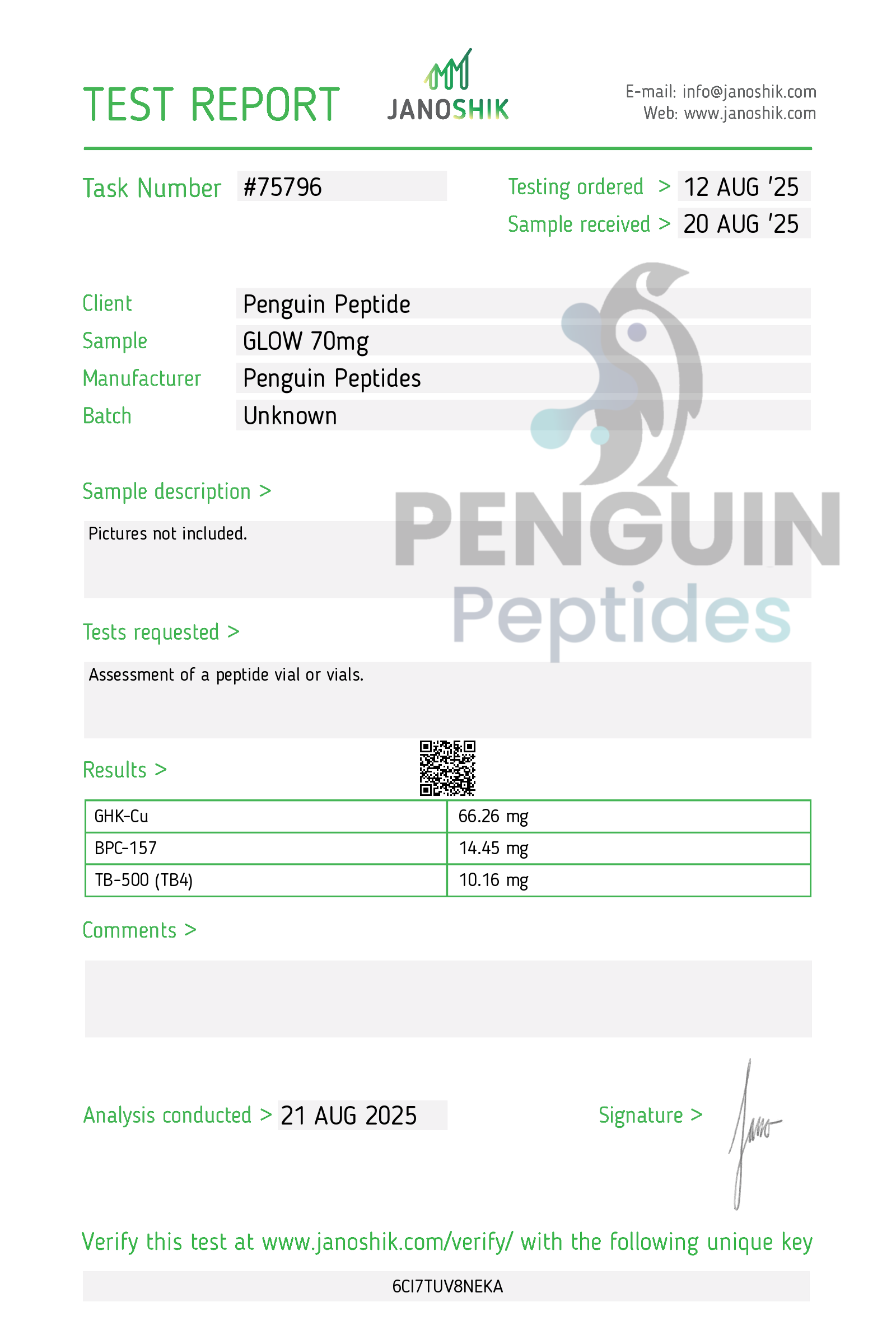 Total Peptide Content: 70mg per vial
