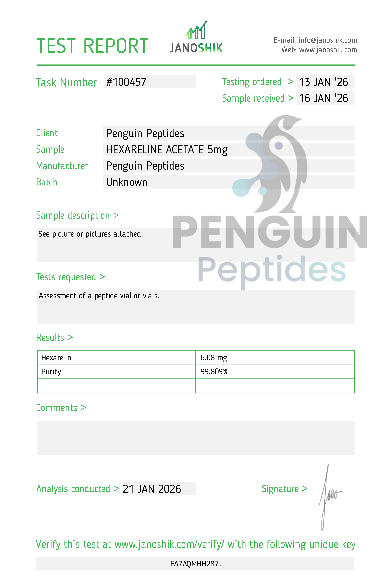 Hexarelin Acetate 5mg is a synthetic hexapeptide and potent growth hormone secretagogue commonly utilized in research exploring GHSR-1a receptor activity, pituitary stimulation pathways, and metabolic signaling models. Studies often focus on its role in growth hormone pulsatility, tissue-repair mechanisms, and cardiometabolic research environments. Hexarelin’s receptor specificity makes it a valuable tool for controlled laboratory investigation.