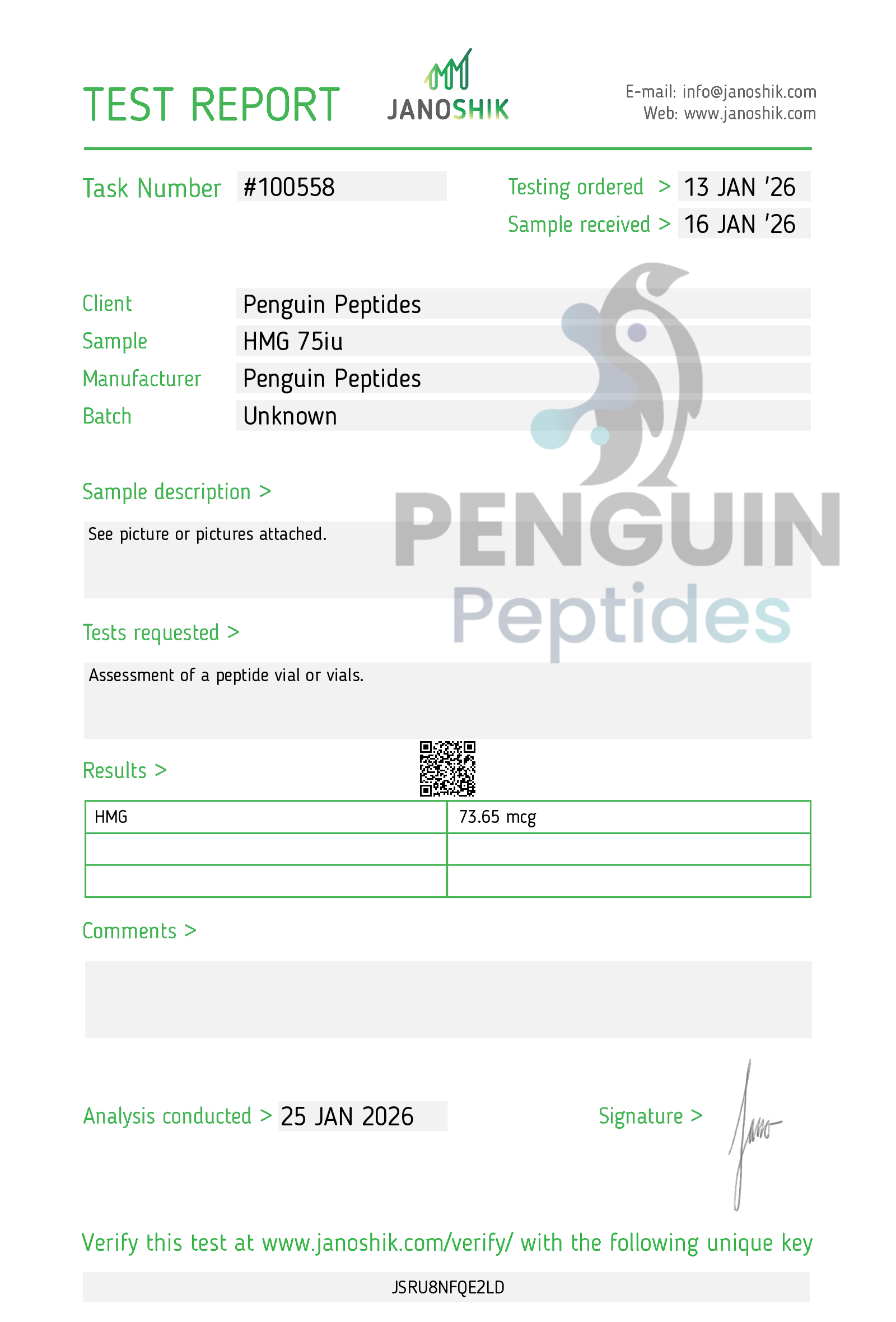 HMG, or Human Menopausal Gonadotropin, is a purified combination of Follicle-Stimulating Hormone (FSH) and Luteinizing Hormone (LH) extracted from the urine of postmenopausal women. It is commonly studied for its effects on gonadal function, hormone regulation, and fertility pathways.